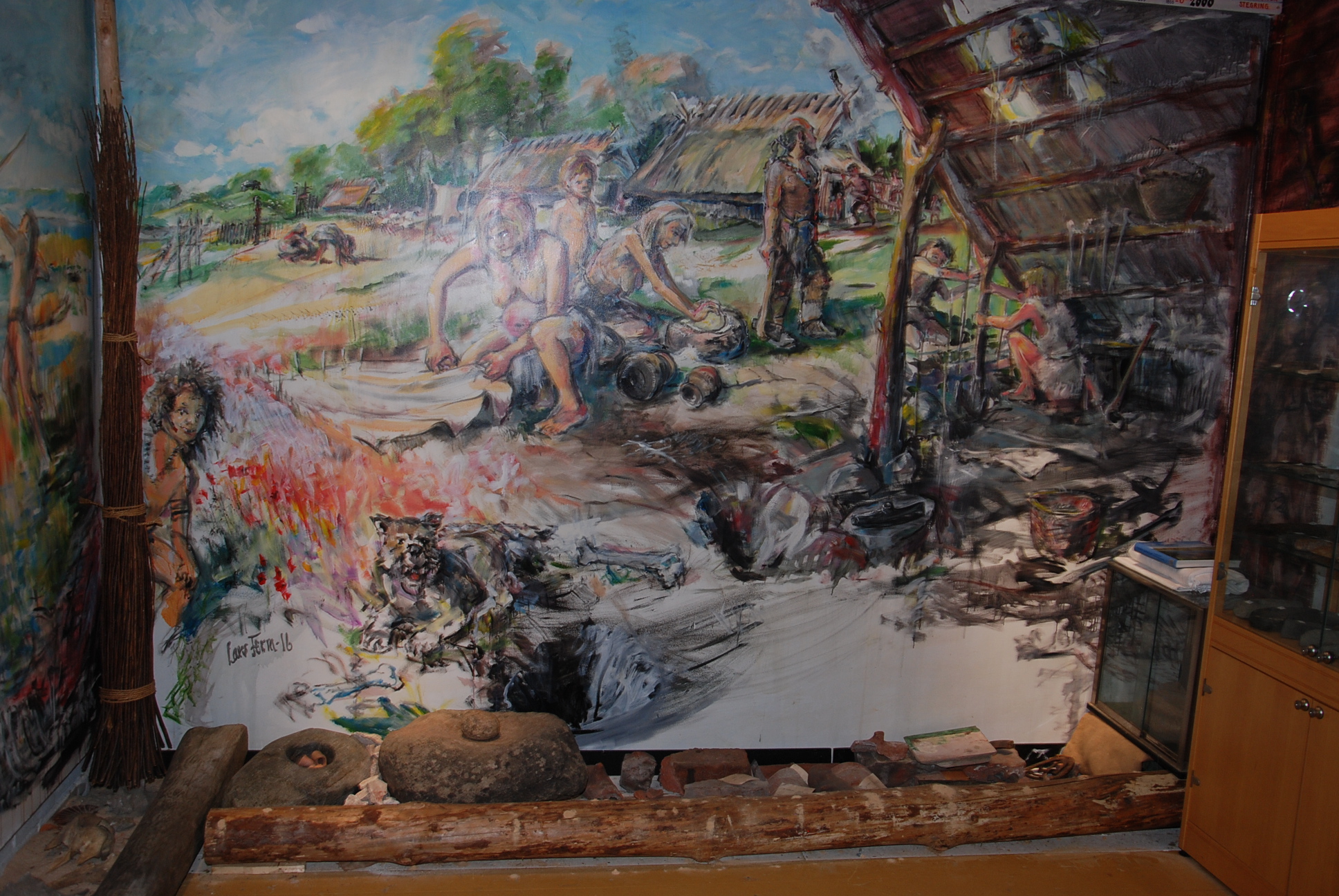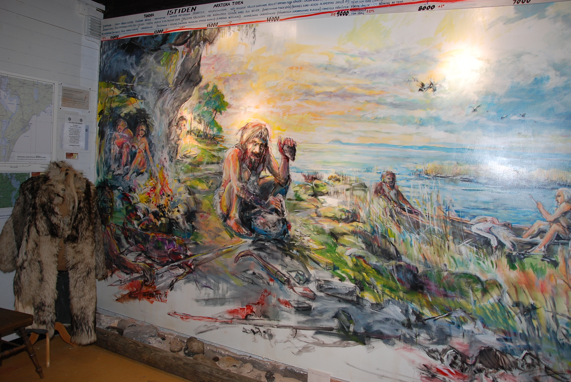 I stenåldersrummet visas en mängd stenar och stenverktyg från stenåldern runt Åhus.